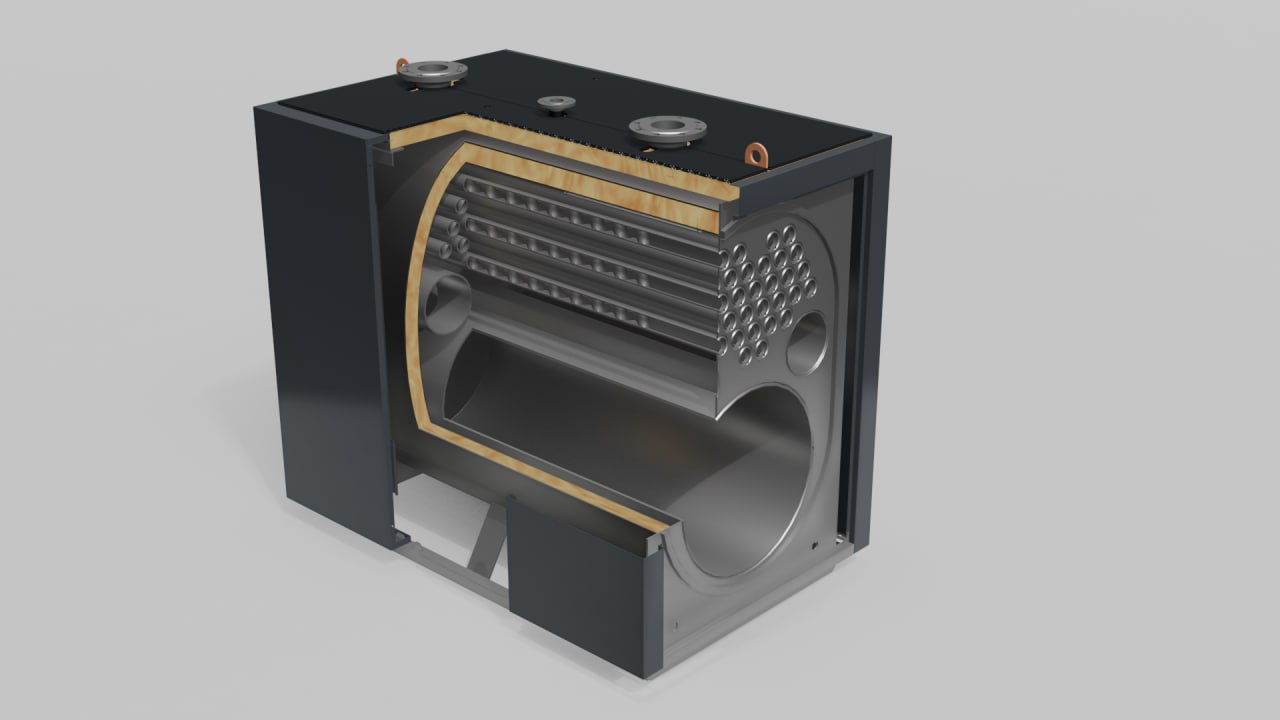 • Большое водонаполнение позволяет равномерно распределить тепловое напряжение в котле, а также способствует естественной циркуляции;