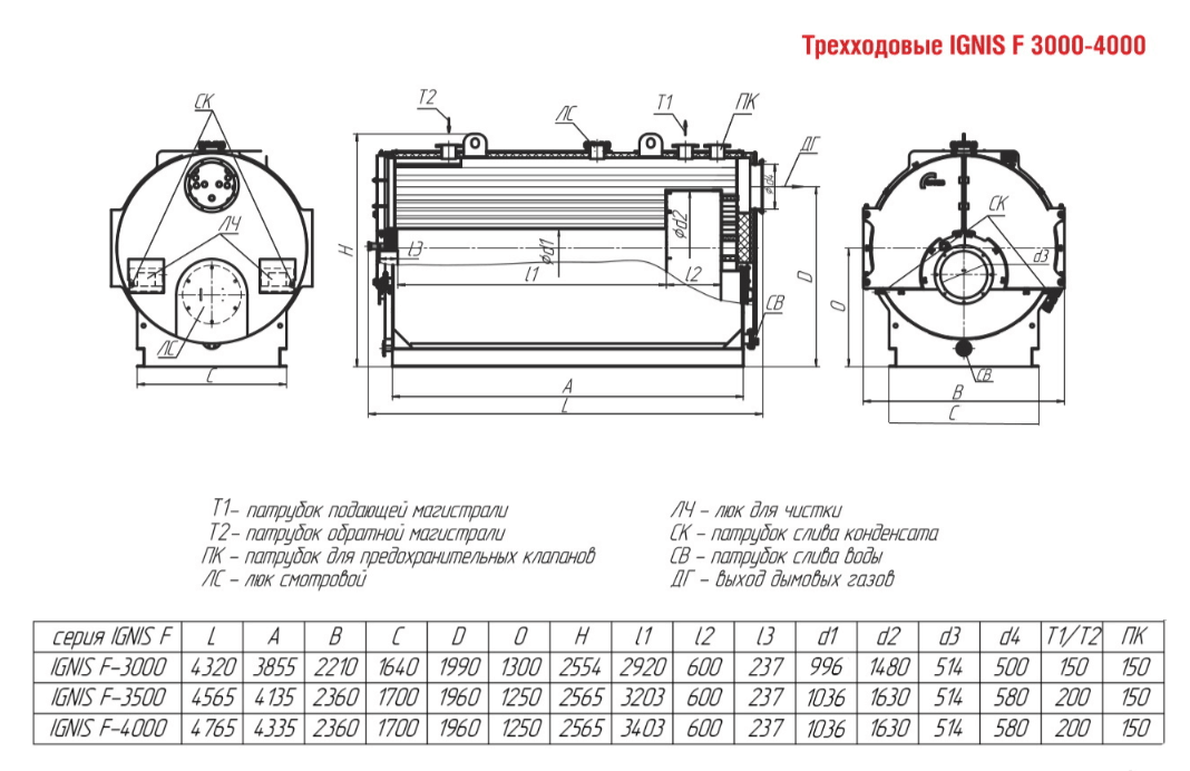 Технические характеристики водогрейного трёхходового котла ARCUS IGNIS F-3500