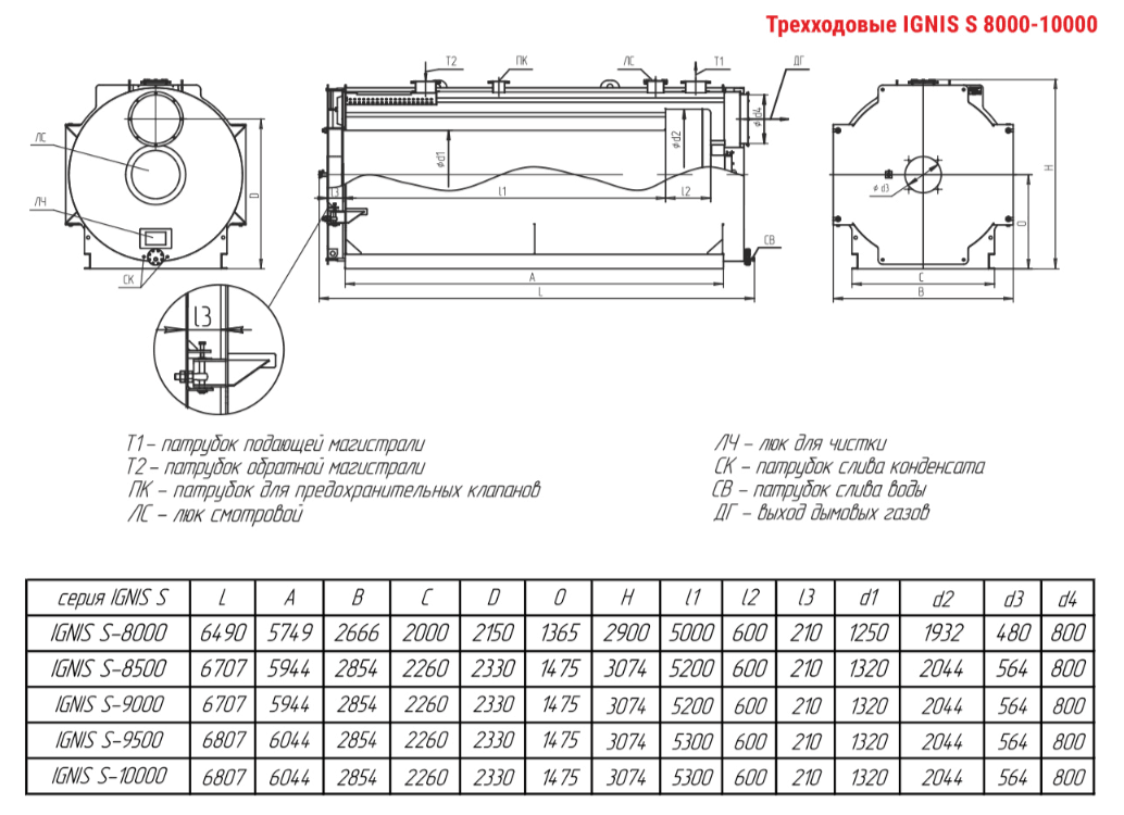 Технические характеристики водогрейного трёхходового котла ARCUS IGNIS S-9000